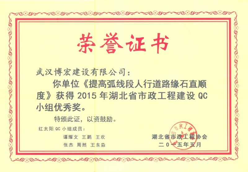 2015年省市政優(yōu)秀獎(jiǎng)