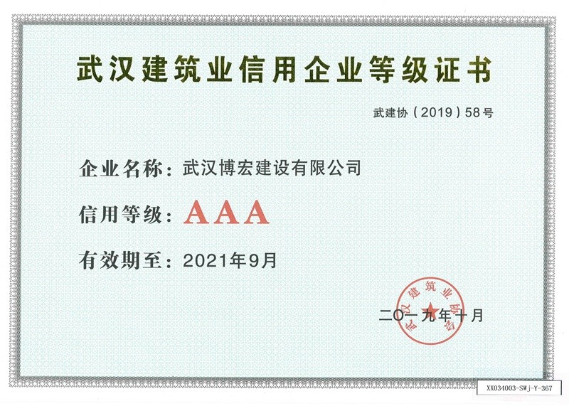 武漢建筑業(yè)信用企業(yè)等級(jí)證書