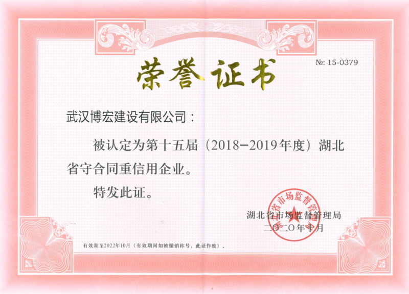 十五屆(2018-2019年度)湖北省守合同重信用企業(yè)