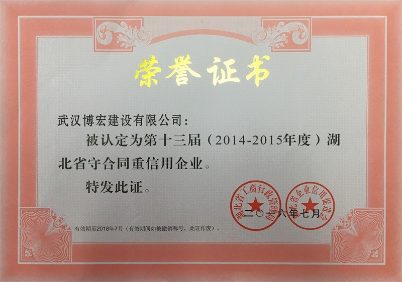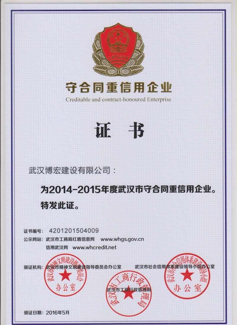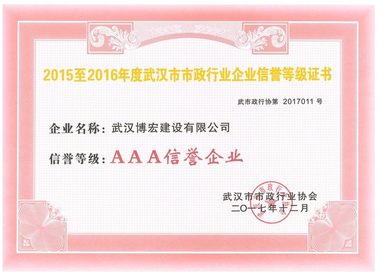 武漢地區建筑業企業信用等級證書2017-2019年度