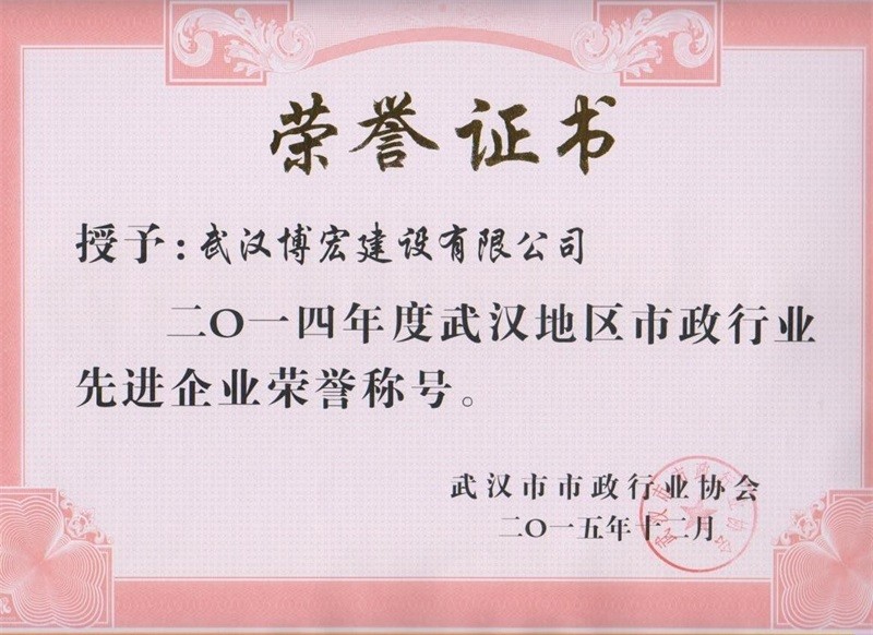 2014年度武漢地區市政行業先進企業