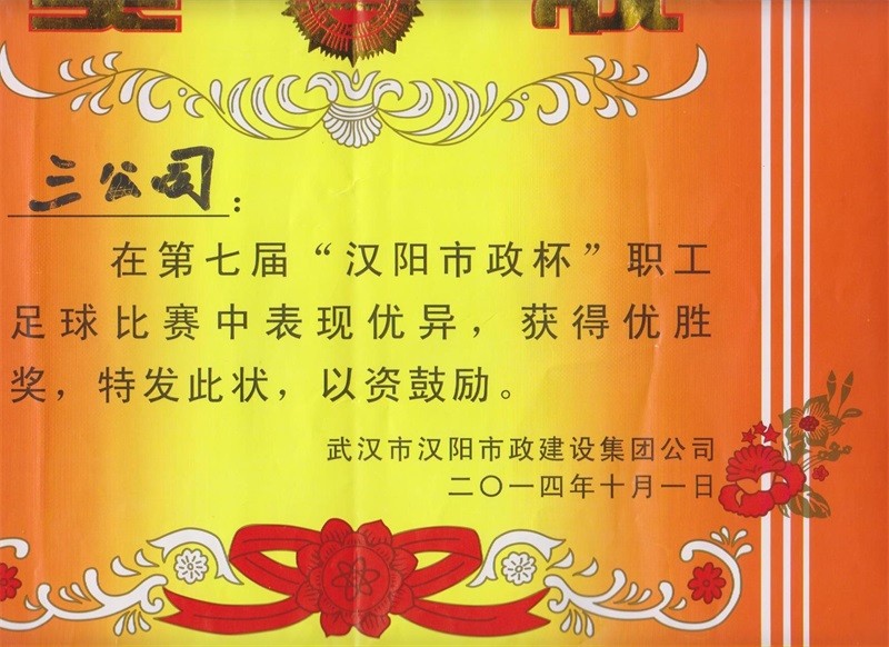 2014年度第七屆漢陽市政杯職工足球比賽優勝獎