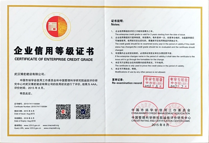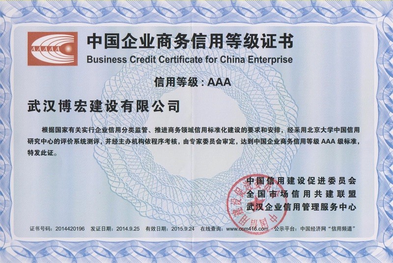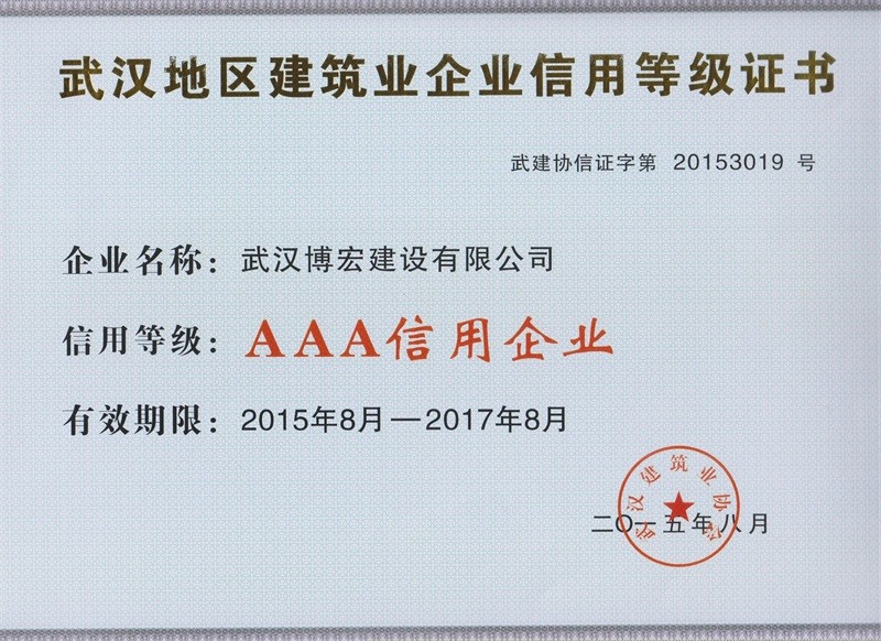 武漢地區建筑業企業信用等級證書