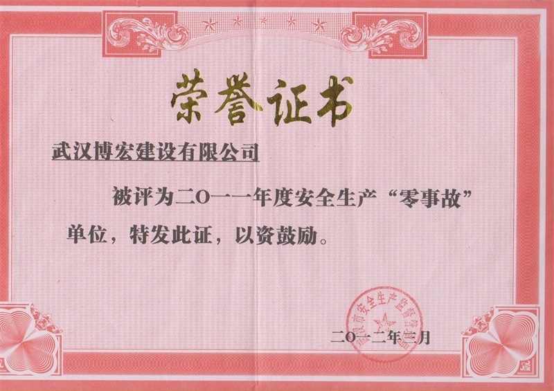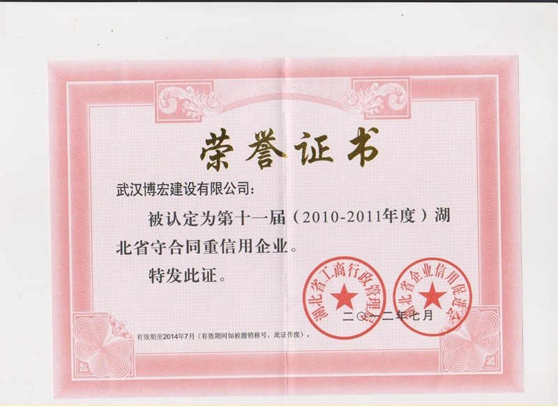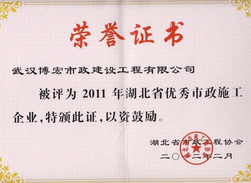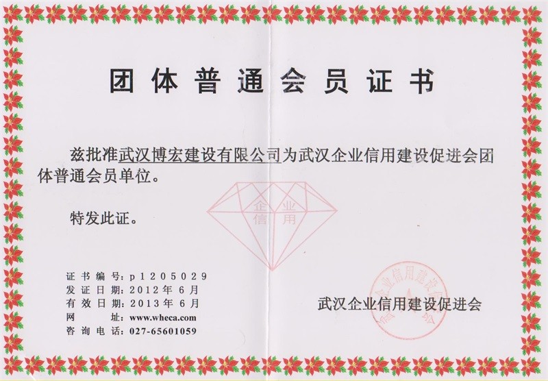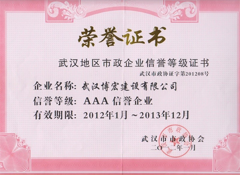 2012-2013年度武漢地區市政行業企業信譽等級證書