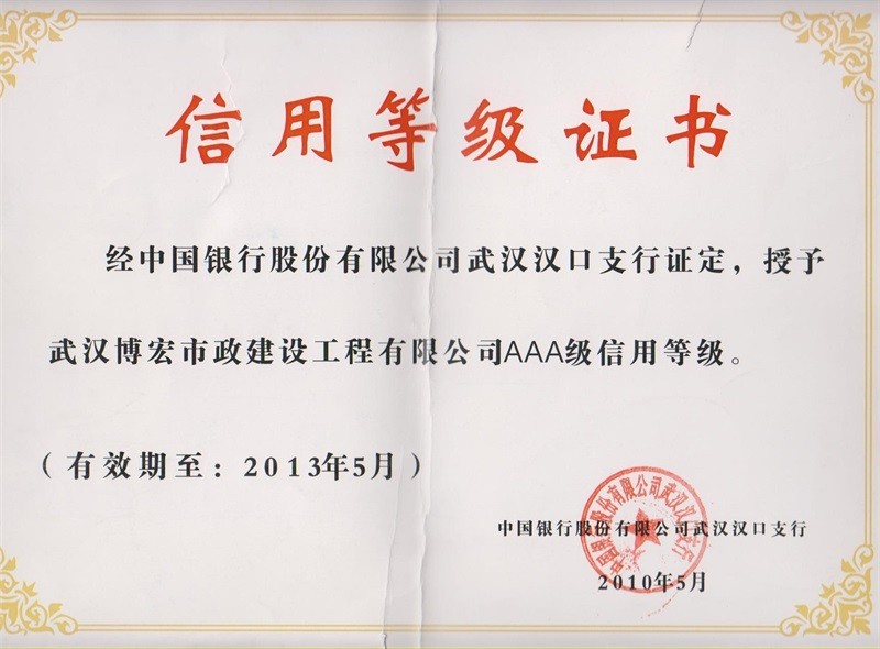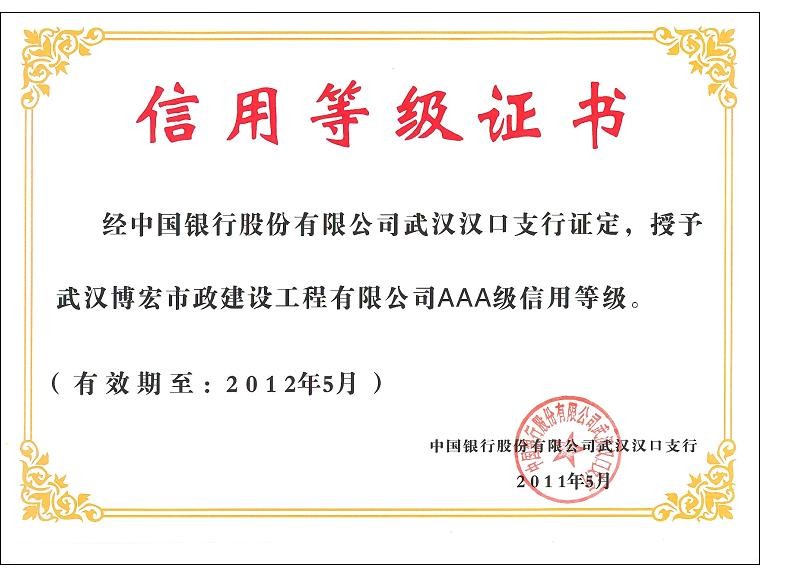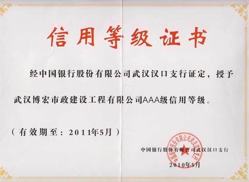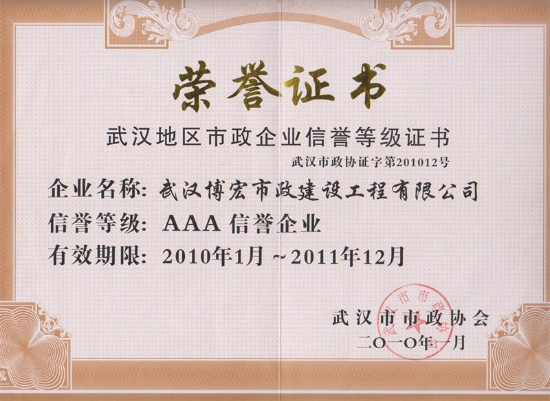 2010-2011年度武漢地區(qū)市政企業(yè)信譽等級證書