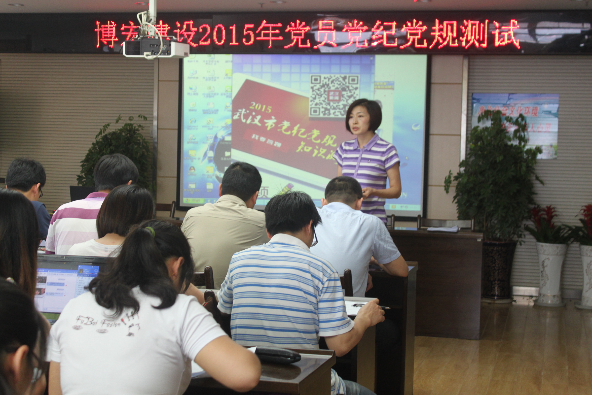 根據武漢市、漢陽區紀委統一要求,2015529日下午,我公司黨支部組織全體黨員參加了2015年黨紀黨規測試。公司39名黨員同志通過集中考試,學習了廉政建設、黨紀黨規、政治常識等方面的內容,全體黨員在黨紀黨規認識上有了新提高,紛紛表示要進一步加強學習,積極發揮先鋒模范作用。