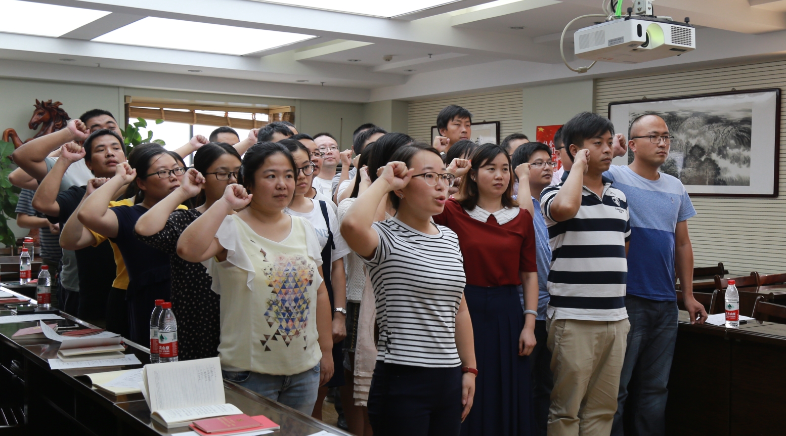 為迎接黨的十九大順利召開,8月15日,漢陽市政三公司八月支部主題黨日活動(dòng)在公司會(huì)議室拉開帷幕,活動(dòng)以“學(xué)習(xí)‘7.26’習(xí)近平總書記重要講話精神,迎接黨的十九大”為主題,全體黨員齊唱國歌、重溫入黨誓詞、看黨章讀黨規(guī)、學(xué)系列講話······活動(dòng)環(huán)節(jié)豐富,內(nèi)容充實(shí)。