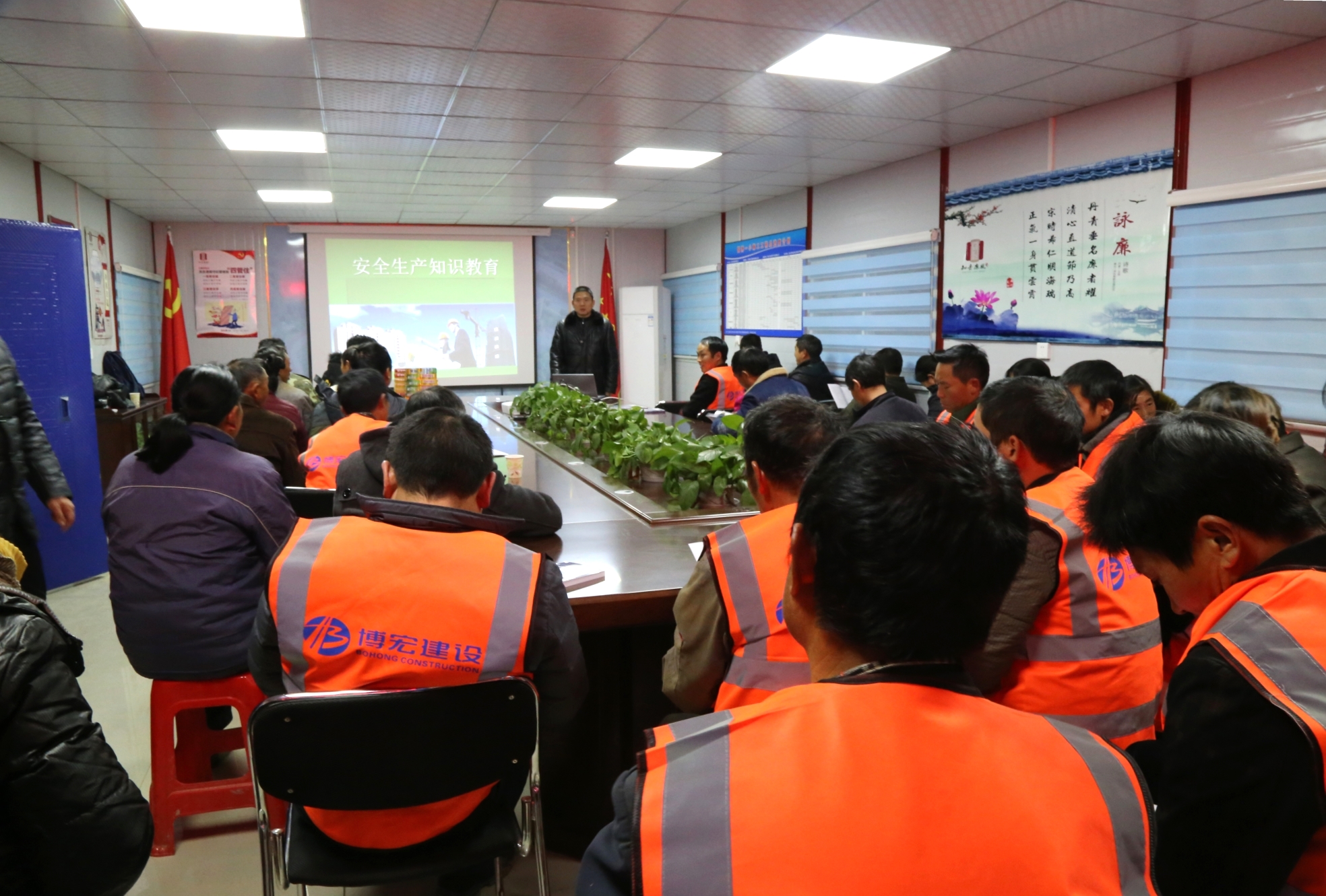 12月11日晚6點,正值冬日嚴寒時段,武漢市建委、漢陽區(qū)建管站新春“三送”活動走進武漢博宏建設有限公司國博一小項目工地,為一線農(nóng)民工兄弟送溫暖、送文化、送法律,漢陽區(qū)建管站站長李宏、集團公司副總經(jīng)理邢榮斌出席此次活動,項目部及民工兄弟約50余人參與其中。