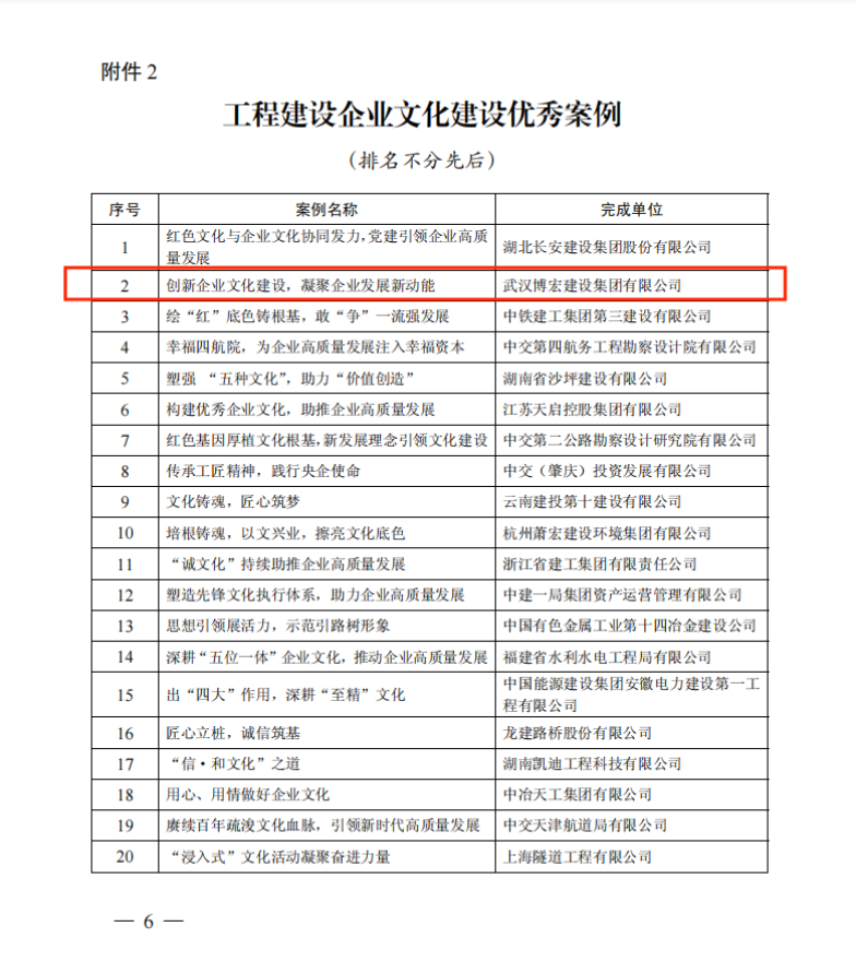 本次榮譽(yù)的獲得是對(duì)公司積極推進(jìn)企業(yè)文化建設(shè)工作成果的肯定,未來博宏建設(shè)集團(tuán)將繼續(xù)全面做好企業(yè)文化建設(shè)各項(xiàng)工作,凝聚全體員工的干事熱情,努力打造競爭型、管理型、質(zhì)量型的一流房建企業(yè)。