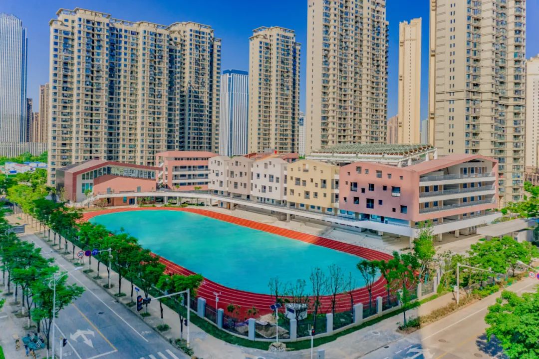 國(guó)博三小位于武漢市漢陽(yáng)區(qū)梅子南街以北,梅子?xùn)|路以東,項(xiàng)目總用地面積為 17387.90 ㎡,總建筑面積為 34829㎡。國(guó)博三小將線性外廊立面體塊化,分段鏤空的洞口式設(shè)計(jì)使學(xué)校造型充滿童話色彩,通過(guò)開(kāi)敞平臺(tái)、首層架空、互動(dòng)中庭、連廊平臺(tái)、下沉庭院、屋頂空間等設(shè)計(jì)手段,營(yíng)造出多樣化的校園空間。