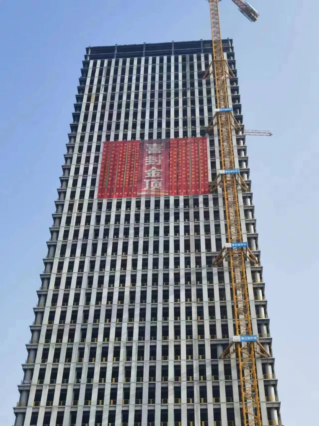 該項目于2020年6月9日正式開工,2021年5月12日工程樁施工完成,2021年7月24日主樓底板進(jìn)行大體積混凝土澆筑,2022年4月30日地下室全部實現(xiàn)結(jié)構(gòu)封頂,2022年9月完成副樓封頂,2023年1月18日迎來主樓主體結(jié)構(gòu)封頂,項目進(jìn)度節(jié)點節(jié)節(jié)攀升!建設(shè)過程中面對工程地質(zhì)條件差、工程體量大、結(jié)構(gòu)復(fù)雜等諸多技術(shù)難題及疫情的考驗,項目建設(shè)團隊高度重視、密切配合、通力協(xié)作,克服了人員管控難度大、材料設(shè)備進(jìn)場難以及因疫情放開導(dǎo)致的管理人員相繼感染病毒等重重困難,在春節(jié)前順利實現(xiàn)了本次主樓封頂。