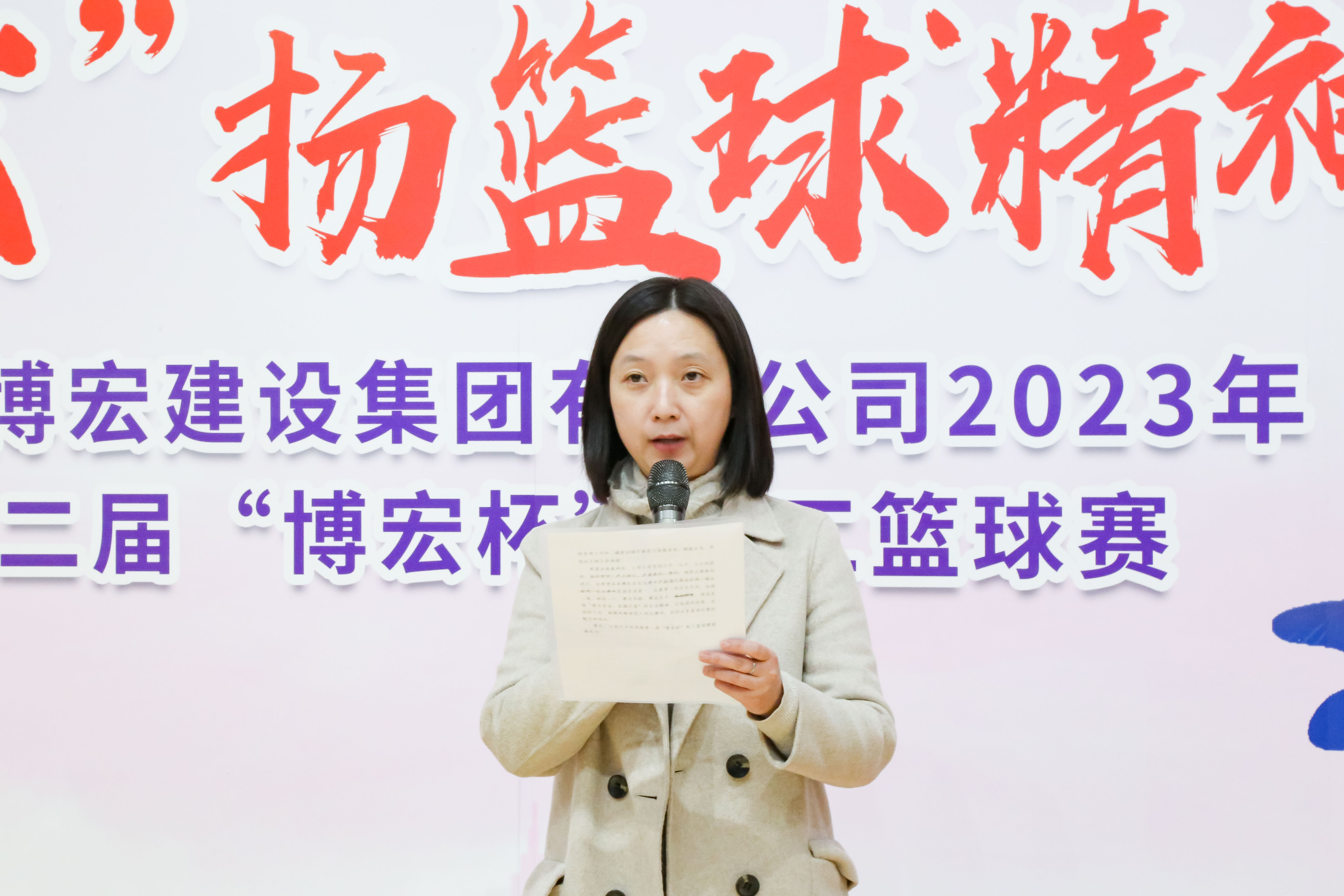 博宏建設(shè)集團(tuán)黨委副書(shū)記、工會(huì)主席郭一清為開(kāi)幕式致辭。她希望全體運(yùn)動(dòng)員以此次比賽為契機(jī),外強(qiáng)體魄、內(nèi)修素養(yǎng),把頑強(qiáng)拼搏、勇攀高峰、精誠(chéng)團(tuán)結(jié)、永不言棄的籃球精神轉(zhuǎn)化為干事創(chuàng)業(yè)、攻堅(jiān)克難的不竭動(dòng)力,不忘初心、接續(xù)奮斗,以昂揚(yáng)向上、奮發(fā)有為的精神狀態(tài)為引領(lǐng),助推公司更好更快發(fā)展。最后她預(yù)祝本次籃球賽取得圓滿(mǎn)成功。