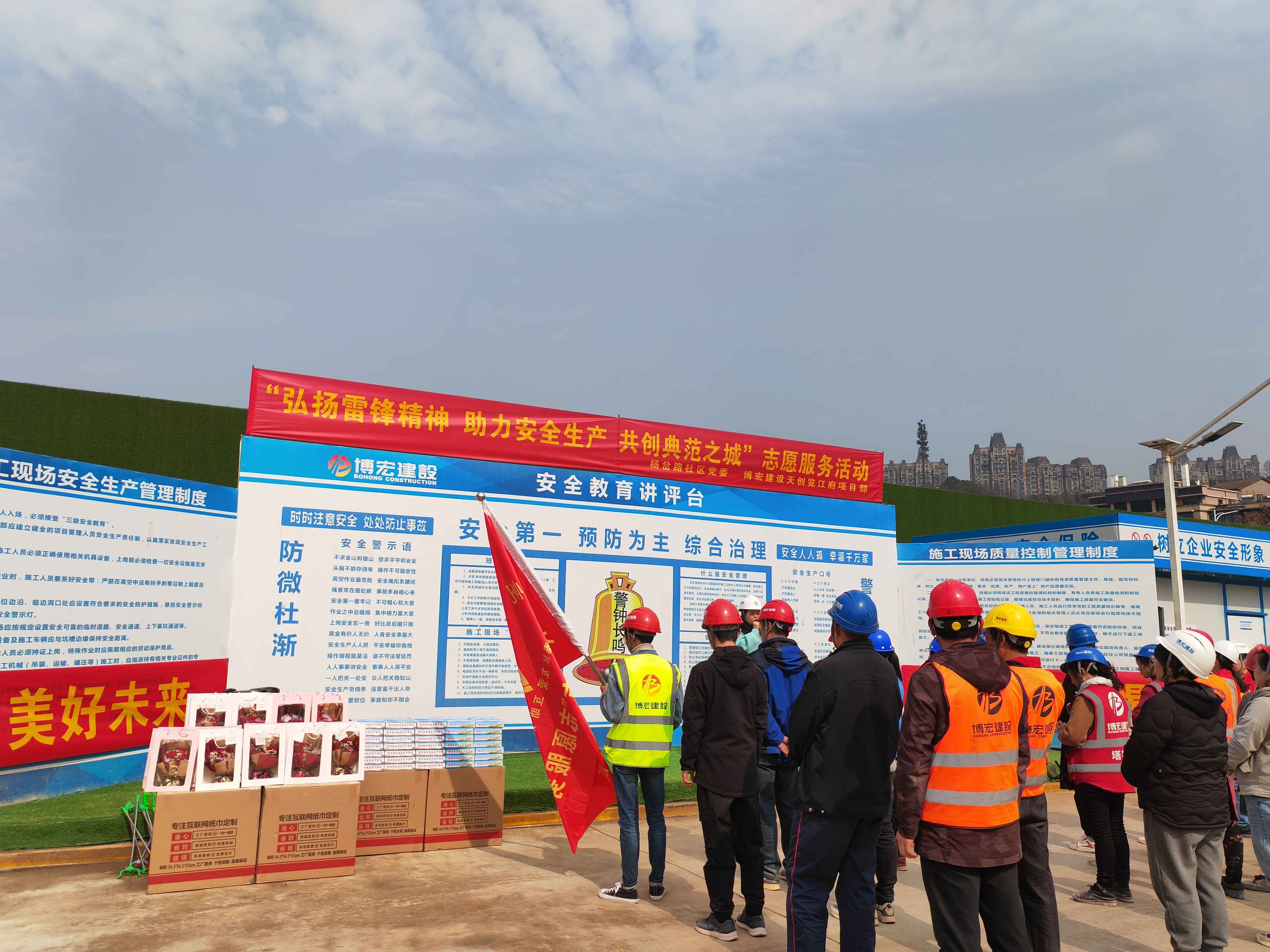 在第60個“學雷鋒紀念日”和“三八”女神節(jié)來臨之際,博宏建設(shè)集團天創(chuàng)覽江府項目部聯(lián)合楊岔路社區(qū)黨委、楊帆志愿者服務(wù)中心開展“弘揚雷鋒精神,助力安全生產(chǎn),共創(chuàng)典范之城”主題志愿服務(wù)活動,為堅守在項目一線辛勤耕耘的城市建設(shè)者們提供多種多樣的便民服務(wù)及健康義診,30余名職工代表、農(nóng)民工代表、社區(qū)“守心”醫(yī)療志愿者參加活動。