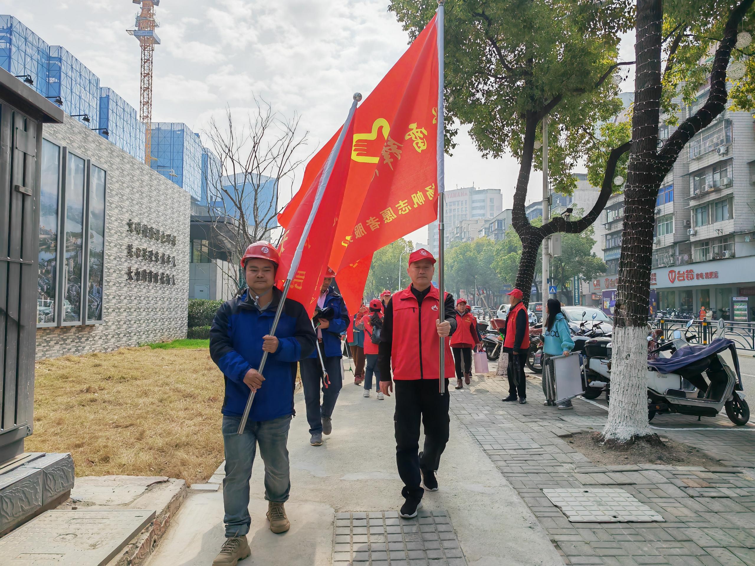 項目部工友志愿服務(wù)隊與楊帆志愿服務(wù)中心志愿者化身文明行為的倡導者走上街頭、走進小區(qū),通過發(fā)放宣傳單、紙巾盒的形式向轄區(qū)居民群眾廣泛宣傳文明行為,倡導大家爭做文明人,踐行文明事,傳揚文明風,用實際行動詮釋新時代的“雷鋒精神”。