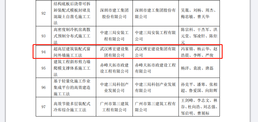 近日,中施企協公布了首屆工程建設企業數字化、工業化、綠色低碳施工工法大賽結果的通知,以中南科研設計中心建設項目為載體的“超高層建筑裝配式窗間外墻施工工法”榮獲中施企協首屆工程建設企業數字化、工業化、綠色低碳施工工法大賽二等獎,是公司參與該類賽事以來獲得的最高獎項。此外,“大跨度懸挑結構模板支架施工工法”榮獲優勝獎
