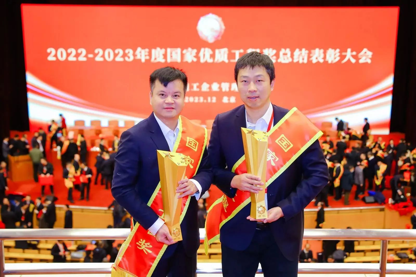 12月24日,2022~2023年度國家優質工程表彰大會在北京隆重召開,公司總經理助理李暉、項目經理童威接受頒獎。博宏建設集團捧回了兩座浸染著汗水與拼搏的榮譽獎杯。