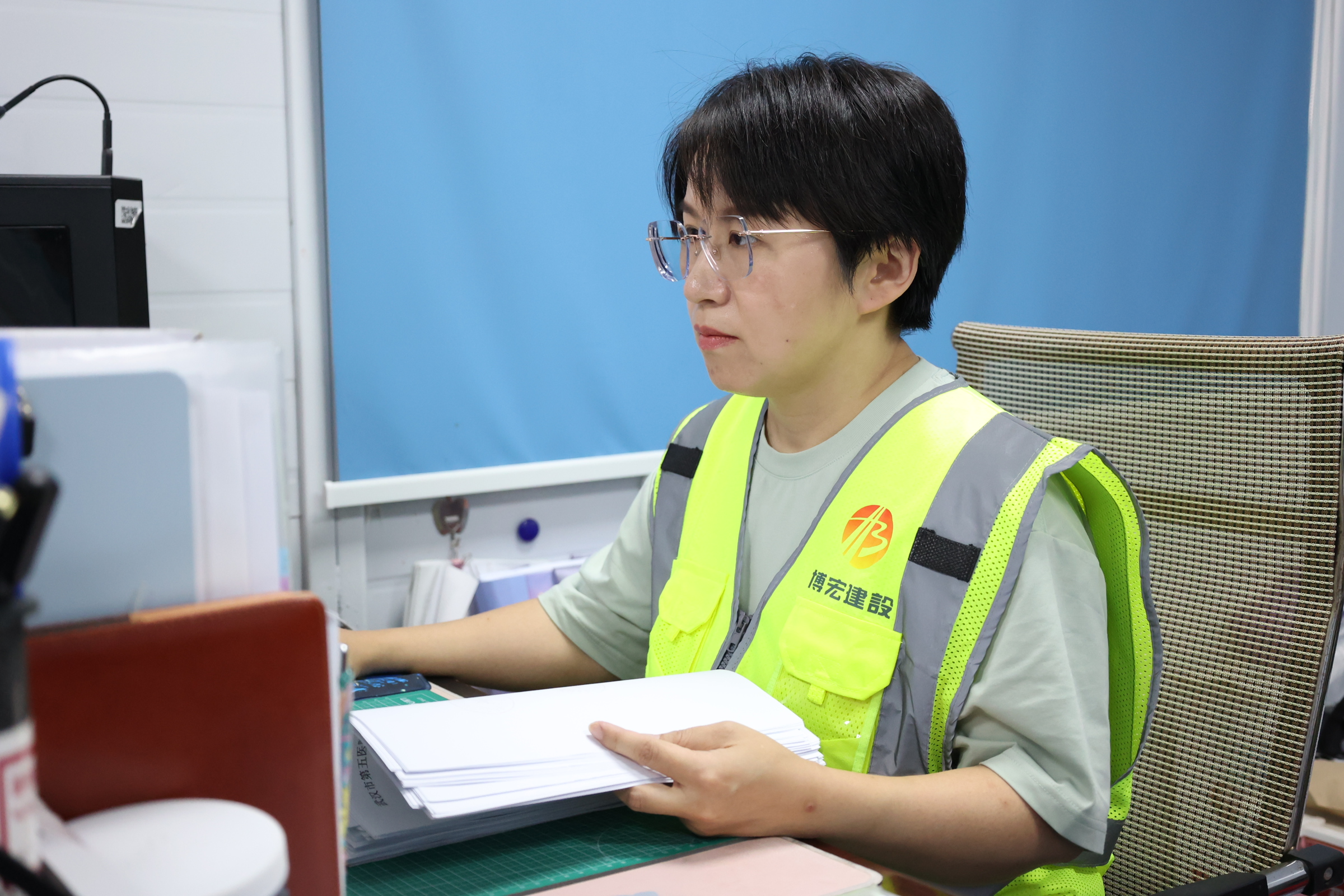 為了讓每一份資料都經得起推敲,胡家珍除了每天在資料中穿梭,還經常要下項目與一線人員溝通,了解施工的整體概況,掌握項目建設進展的實際情況,她舉例說到,“打混凝土之前我們要做什么,打了混凝土之后要干什么,現場工序的申報、現場實驗、送檢,每一步工作都要提前安排好,確保資料和現場同步。”只有在累積和充分掌握現場實際和相應的作業基礎知識后,才能把資料的編制工作做得得心應手。